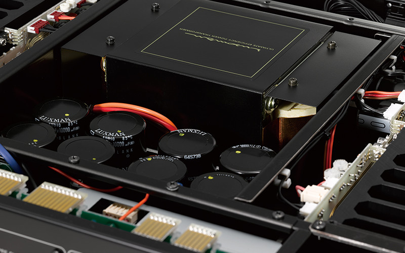 Lo stadio di alimentazione ospita due batterie di condensatori con un’elevata capacità d’impedenza equivalente a quella del finale M-700u, mentre il trasformatore toroidale ha una potenza di 600VA. La sezione di ingresso è invece derivata dal preamplificatore C-900u, adottando un circuito ‘Bee Line’ dai percorsi di segnale il più possibile abbreviati. Sono disponibili ingressi per testine MM/MC, quattro sorgenti linea RCA e due bilanciate XLR, con doppia uscita tape rec.